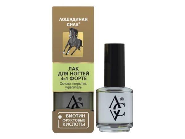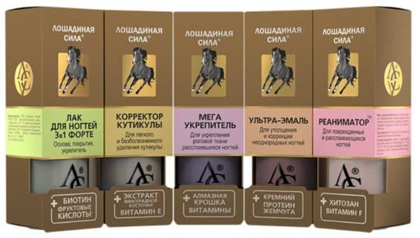 При изготовлении лаков для ногтей производитель преследует ту же цель, что и в деле выпуска шампуней — уход и возвращение природной красоты. Поэтому среди продукции «Лошадиная сила» для ногтей нет цветных лаков, и действие каждого такого средства направлено на то, чтобы улучшить состояние ногтевой пластины, преобразить ее внешний вид.