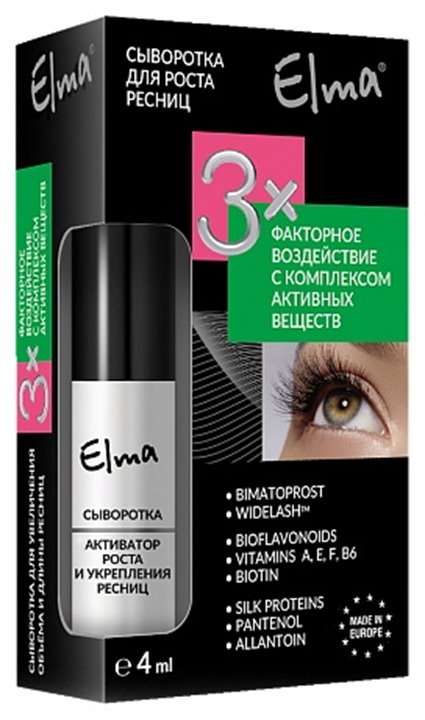- «Elma»: ускоряет процесс появления новых стержней. Средство наносят по всей длине, выдерживают 15 минут, смывают влажным тампоном.