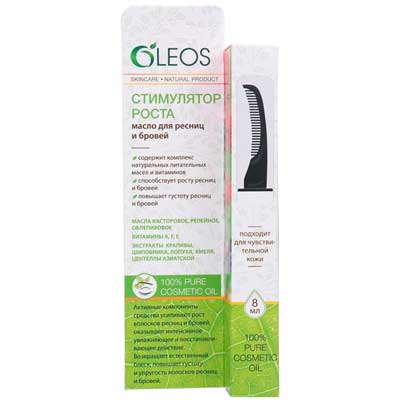 На 6-ой строчке рейтинга расположилось бюджетное масло для ресниц Стимулятор роста от российской марки OLEOS. В его составе содержатся натуральные касторовое, репейное, облепиховое масла и комплекс витаминов. Без запаха. Для нанесения и равномерного распределения есть удобная щеточка.