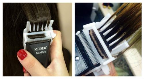 Машинка срезает полностью все торчащие концы как здоровые, так и секущиеся. Причем, делается это по всей длине. Если у Вас ровная стрижка или срез, отрастающие волосы или просто непослушные пряди, то лучше для проведения сеанса обратиться в качественный салон к опытному мастеру.