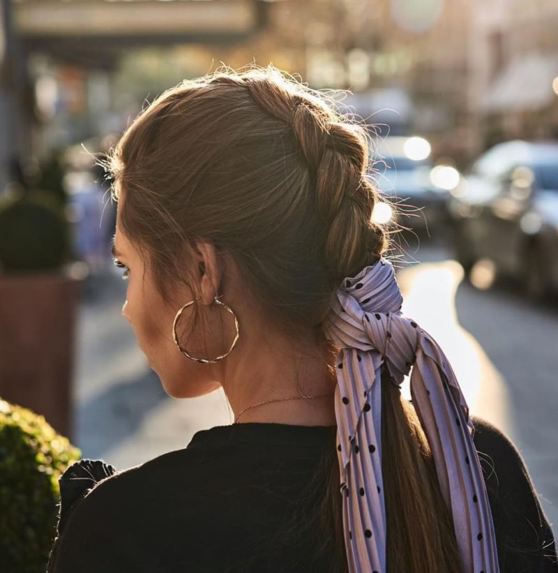 Обратите внимание на зажим, если он будет тяжелым, то не задержится на волосах. Идеально для этого случая подойдет крабик. Четырехпрядная коса с лентой хороший вариант укладки волос на каждый день