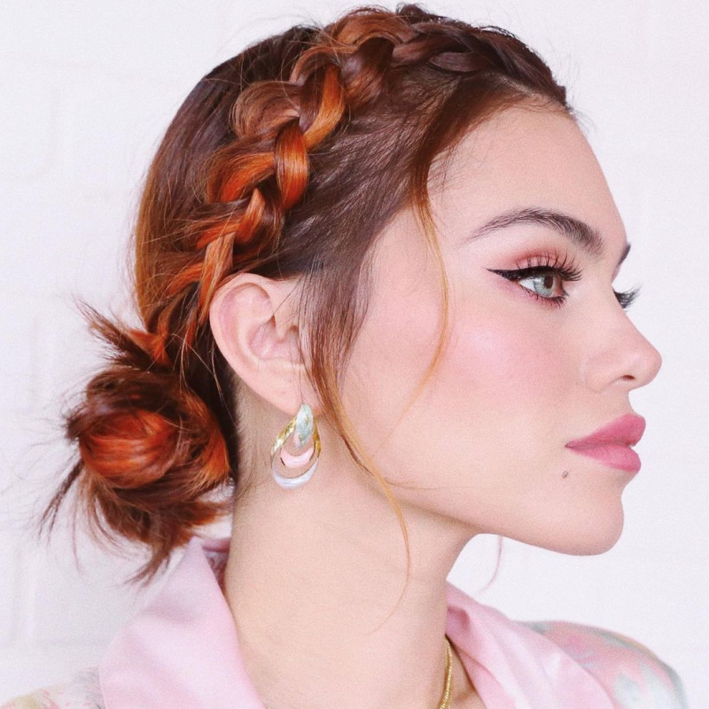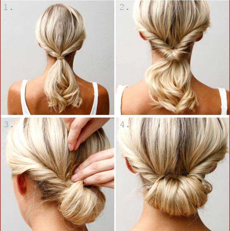 Это самая простая и в то же время быстрая прическа из описанных выше вариантов. Если немного потренироваться, то пучок из кос можно будет выполнять всего за пару минут. Она подойдет на разную длину волос. Если готовая прическа получится слишком простой, можно украсить ее любым подходящим аксессуаром.