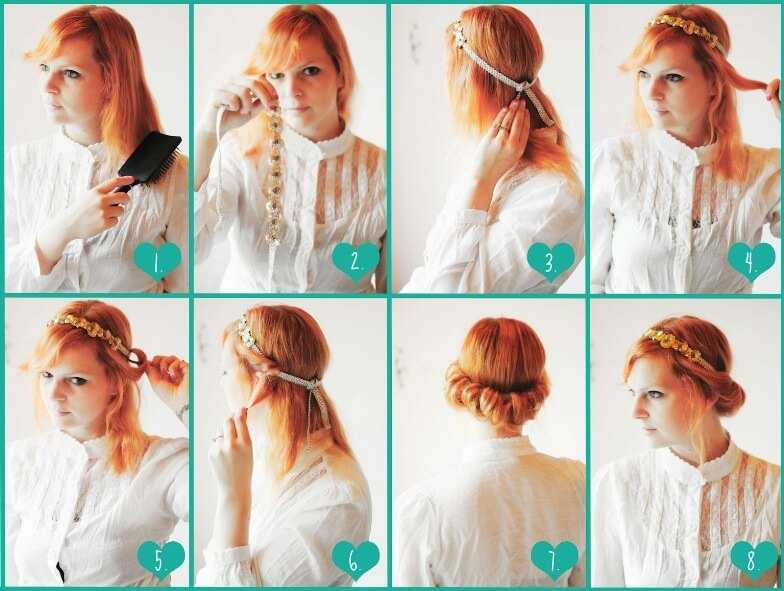 Этот вариант укладки придется по вкусу романтичным особам, которые ведут активный образ жизни. Сделать прическу можно на средних или коротких волосах. Для работы понадобятся обычная расческа и повязка для волос.