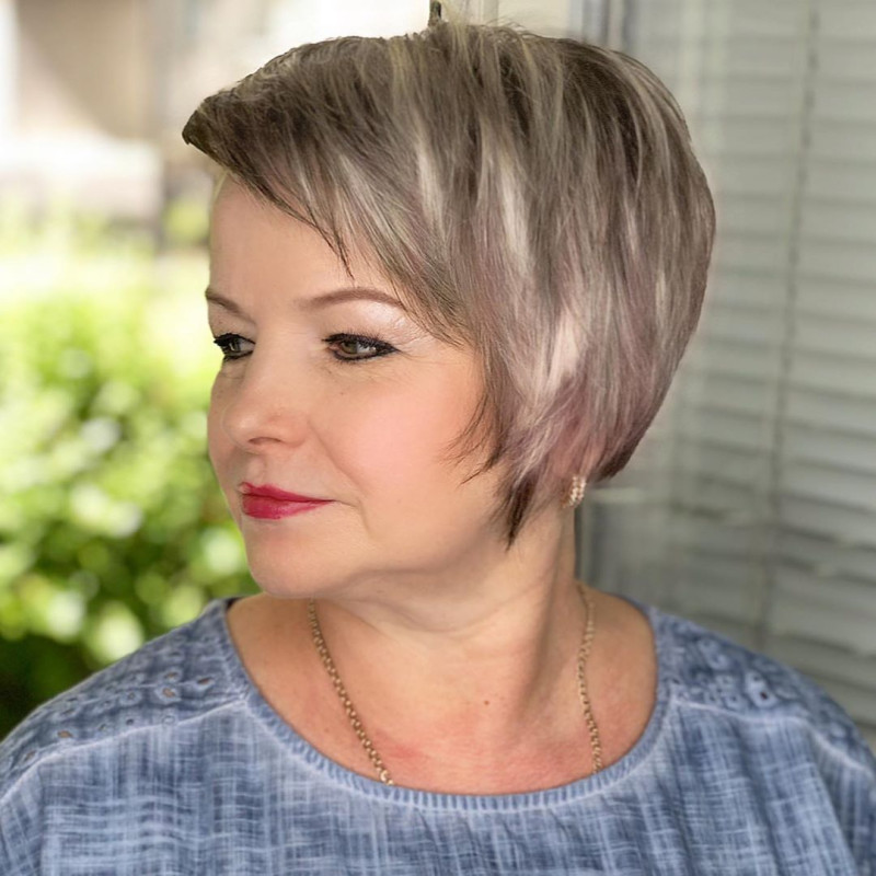 Этот тип стрижки прост в уходе и, кроме того, придает волосам подвижность и объем, что так важно для женщин после 50 лет. Эта прическа излучает сияние молодости и действительно очаровательна