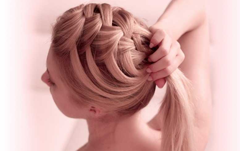 - Опустить голову вниз и заплести французскую косу от основания шеи до макушки.