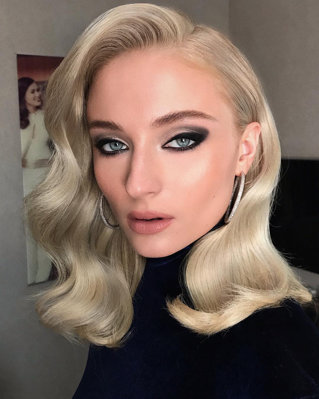 Гладкие плавные крупные волны, уложенные на одну или обе стороны, как у кинодивы на фото, идеальный выбор для волос средней длины.
