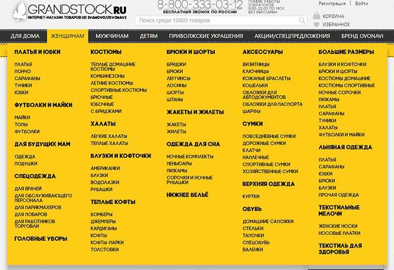 Сайт сфокусирован на женской одежде. Попутно в магазине продают мужскую и детскую одежду, аксессуары и домашние принадлежности, но ассортимент этих категорий не так широк.