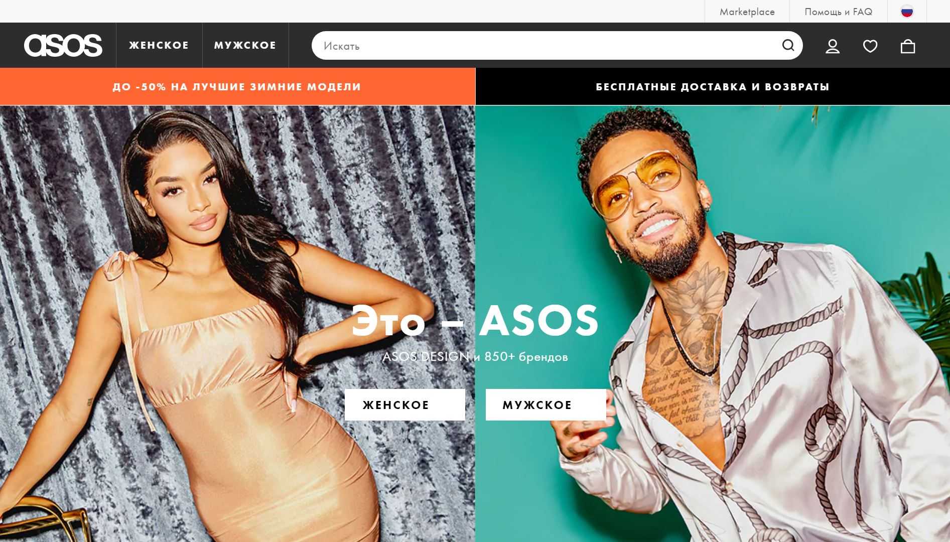 ASOS бесплатно доставляет в Россию покупки на сумму от 2000 рублей. Магазин регулярно устраивает акции и распродажи.