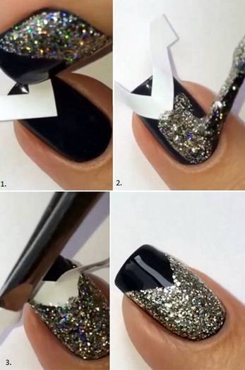 Дизайн лунного маникюра с блёстками