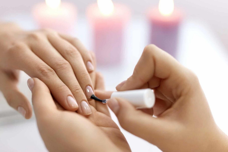После чего на ноготки наноситься базовое покрытие, которое сохраняет их природный блеск и улучшает сохранность лунного маникюра.