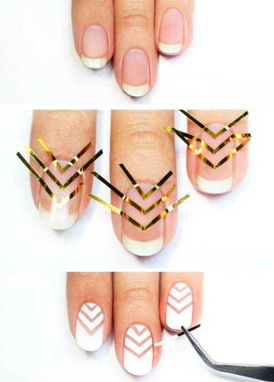- Делаем маникюр с лентой пошагово, 35 идей + фото. Геометрия, лунный, шеврон, минимализм и… полоска! »