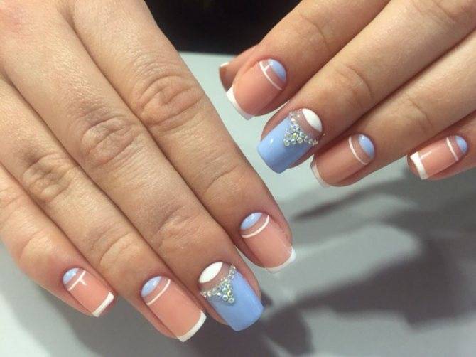 Лунный маникюр гель-лаком со стразами, фото