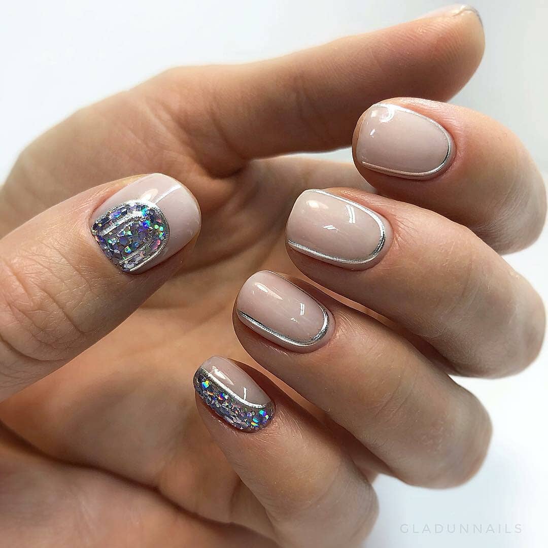 Дизайн лунного маникюра с блёстками