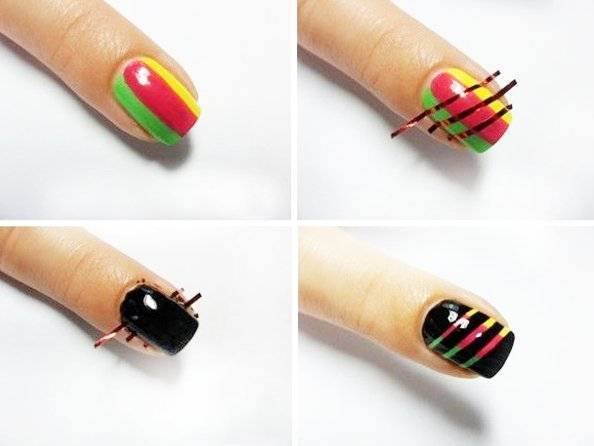 Для первого варианта понадобится кисть и набор контрастных лаков.