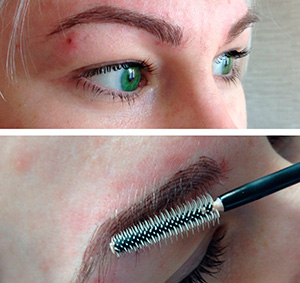 - При помощи щеточки распределять от основания до края легкими движениями, как при использовании туши.