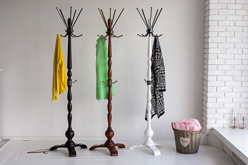 Подставки для ног позволяют клиенту полностью расслабиться. Существуют стационарные варианты, которые закрепляют в нижней части подзеркального стола. Съемные модели можно убирать или выставлять по желанию. Вешалки нужны для хранения верхней одежды и сумок посетителей.