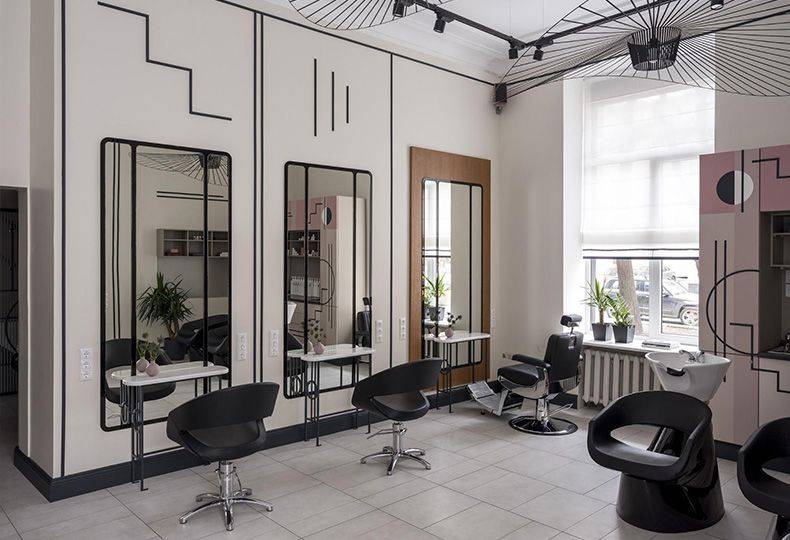 Используйте в дизайне больше зеркал. Это не только удобно для мастера, но и визуально расширяет пространство салона красоты.
