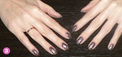 Третий этап – основной. Технология нанесения гель-лака «cat eye»