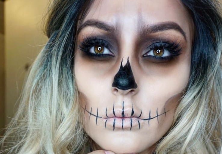 Нижнюю часть лица можно использовать как холст для рисования. Нарисуйте грубые стежки, чтобы «сузить» рот или, скрыв естественную розовость рта натуральным оттенком, изобразите челюсть черепа.
