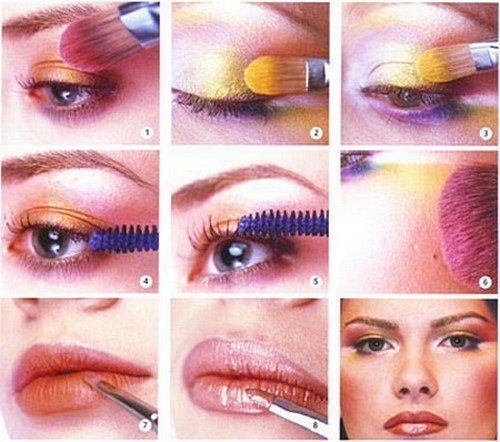 Схема, как сделать макияж в стиле 80-х годов представляем на фото. Смотри ниже.