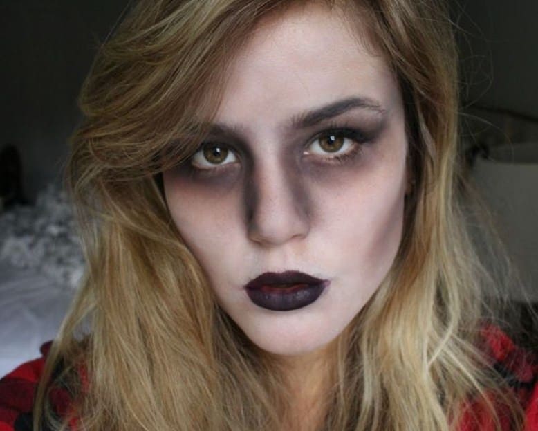 Тщательно замаскированные в обычной жизни, для Хэллоуина «синяки» нужно будет увеличить с помощью серо-черных или фиолетовых теней. В сочетании с «горящими» глазами это создаст необычный образ.