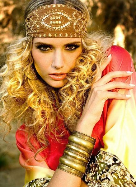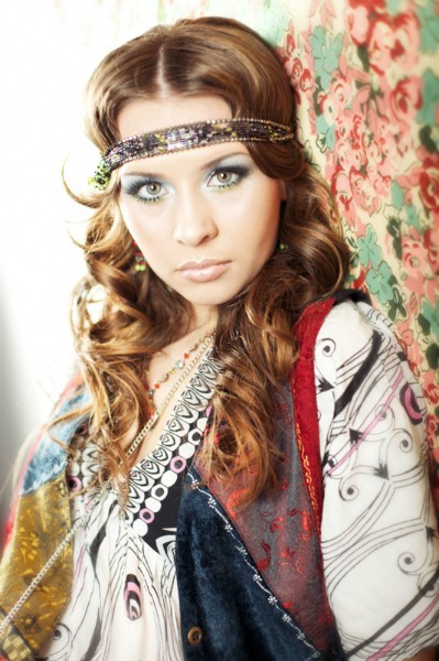 Естественный макияж хиппи готов. Он прекрасно гармонирует с этническими мотивами в образе. Добавьте к этому всему прическу с пасмами волос, как будто высушенными на солнце и ветру. И не забудьте повязать плотный ободок на голову.