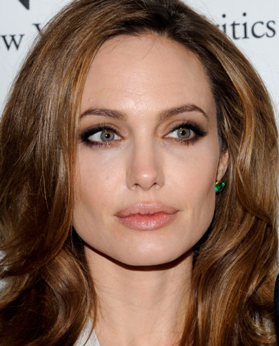 Анджелина всегда подчеркивает скулы, однако делает это очень деликатно. На ее лице Вы никогда не увидите бронзер насыщенного цвета. Все очень естественно и гармонично. Чтобы сделать такие же скулы, возьмите пудру на 2 тона темнее от Вашего естественного тона кожи и сделайте несколько взмахов кистью чуть ниже самой высокой точки скул. Не переборщите — достаточно совсем чуть-чуть. На верхную зону скул нанесите немного деликатного хайлайтера, чтобы создать объем.