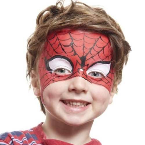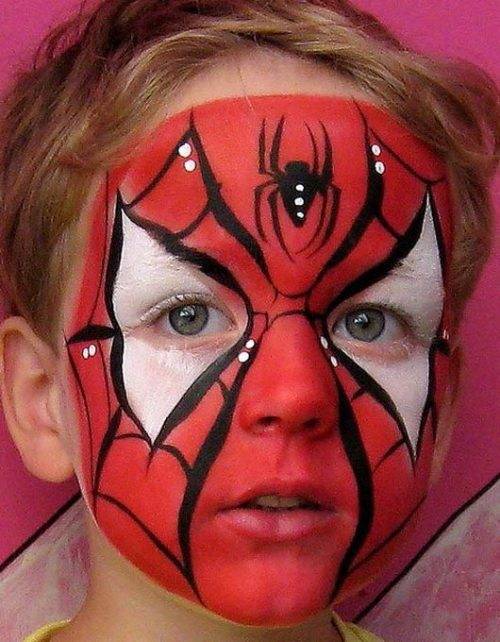 Распространенный образ для мальчика на Хэллоуин – человек-паук. Не забывая предварительно нанести на кожу ребенка защитные детский крем, черной густой краской рисуются контуры вокруг глаз.