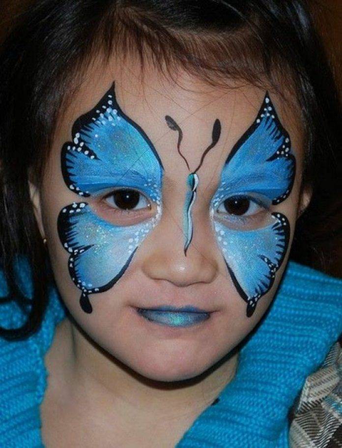Тело и усики бабочки рисуем черным цветом, краску наносим тонкой кисточкой. В завершение можно добавить стразов и блесток. Праздничный и яркий образ бабочки готов, принцесса будет порхать на празднике