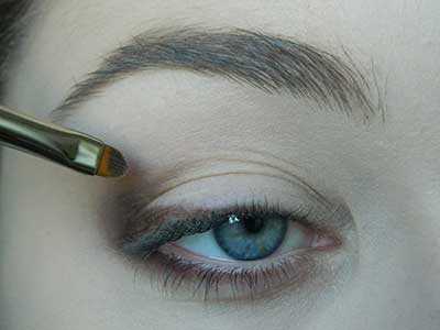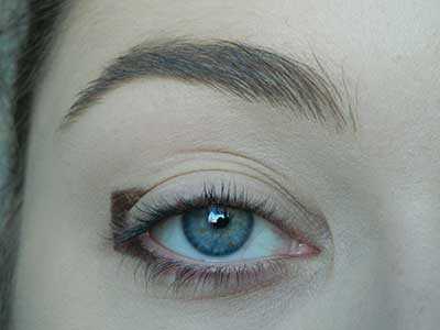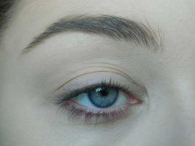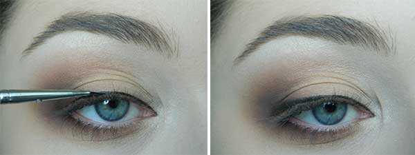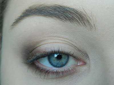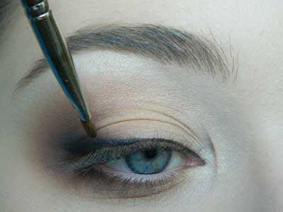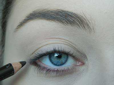 - На границу между подвижной частью века и неподвижной его частью наносим более темную линию. Не забываем о том, что эта линия должна быть видимой, когда глаза открыты. Если она не видна, то переносим ее чуть выше. Вместо теней можно воспользоваться и карандашом подходящего оттенка. Линию, сделанную карандашом, растушевываем. Интенсивность нашей пограничной линии выбираем в зависимости от целей: для дневного макияжа поскромнее, для вечернего – потемнее и поярче.
