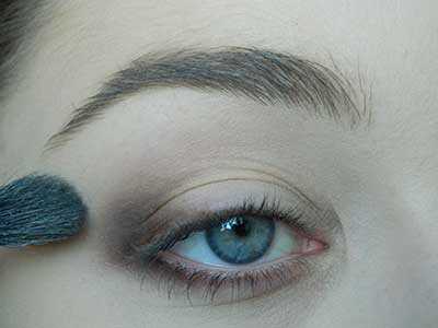 Затем добавляем тени во внешний уголок глаза, постепенно растушевывая их от темного к самому светлому оттенку.
