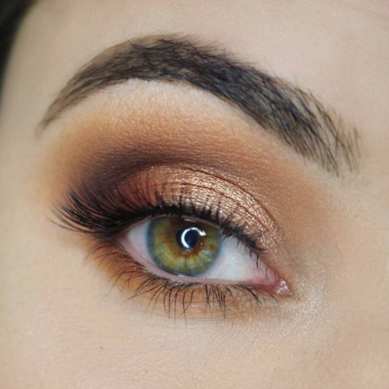 Для создания безупречного макияжа важно придерживаться простого правила: цвет теней не должен совпадать с оттенком глаз. Сделать активным взгляд помогут тени, относящиеся к дополнительным контрастирующим цветам, в нашем случае, оранжевый тон