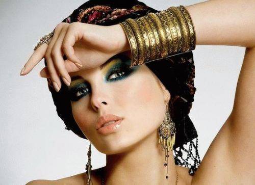 В заключении следует отметить, что восточный макияж, как и восточный образ в целом, предполагает обилие украшений, начиная от массивных колье и браслетов, заканчивая блестками и стразами, которые уместны как в макияже и прическе, так и в одежде.