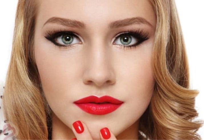 Подводку для глаз стоит выбрать черную вместо коричневой, а для макияжа губ сделать выбор в пользу розовой или красно-коралловой помады.