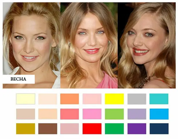 «Весна» является одним из самых нежных и редких цветотипов. Девушки, попадающие под него, отличаются естественной красотой и излучают свет. При взгляде на образ весенних девушек сразу бросается в глаза блеск в глазах и приятная улыбка. По фото перечисленных знаменитых женщин можно увидеть что, несмотря на разные черты и подтипы, их объединяет естественность и теплота во внешности.