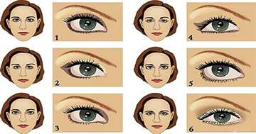 - темные оттенки наносятся поверх основных, захватывая краешек века и верхний уголок; они могут быть подобраны в связи с теми же параметрами;
