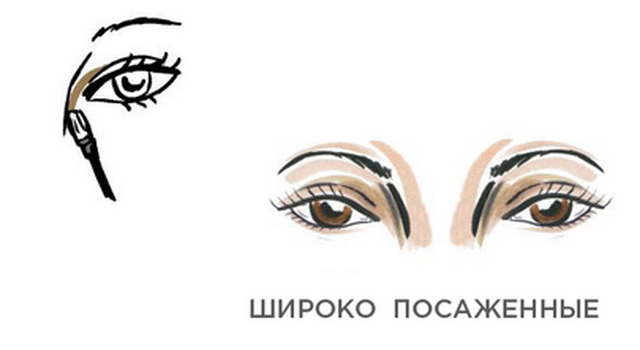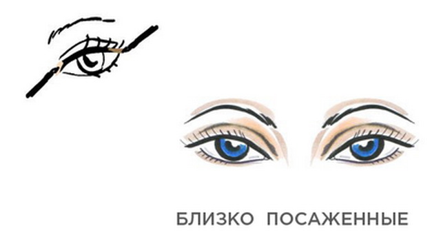 При коррекции близко посаженных глаз макияжем важно не затрагивать внутренний угол глаза: не доводить стрелку, не затрагивать ресницы при окрашивании и т. д