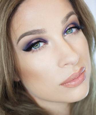 В макияже на Новый год 2020 для голубых глаз подойдут фиолетовые тени (фото это наглядно демонстрируют). Такие тени могут быть от самых светлых до насыщенных тонов. Голубые тени также актуальны, они только подчеркнут ясность глаз. Светлые оттенки вместе с темными выгодно смотрятся в макияже.