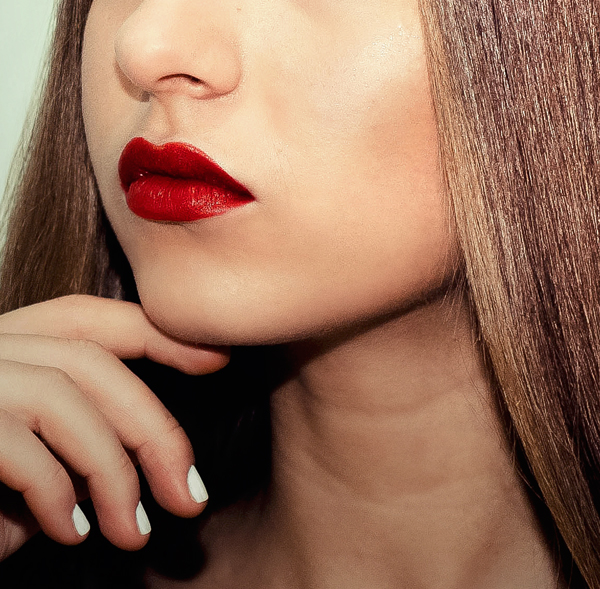 Контур губ должен быть на оттенок темнее помады. Карандашом следует особенно выделить середину рта, то есть область губ под носом.