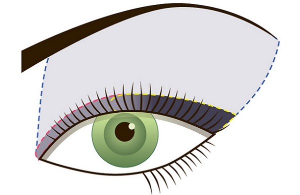 - Наносить тени таким образом, чтобы они не выходили на границу век. Оптимальной формой глаз, которую следует достичь, является вытянутая.