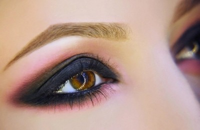 Карие глаза у женщин ассоциируются с образом восточных красавиц, поэтому можно смело брать чёрный карандаш в руки и рисовать эффектные и длинные стрелки на веках. Подводка может быть объёмной с чёткими линиями или слегка растушёванной, двойной или одинарной, а также заканчиваться в области скул красивым орнаментом.