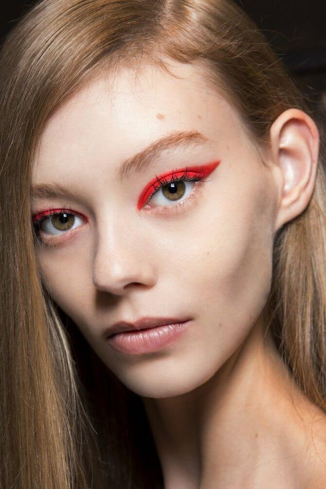 Если ты достаточно смела, то можешь воспользоваться красной подводкой или даже красной помадой вместо теней — прекрасный вариант для кареглазок.