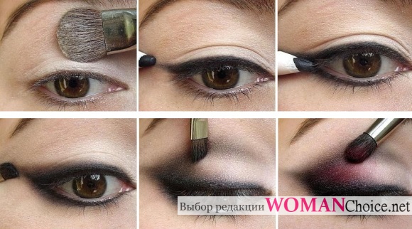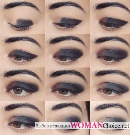 Перед тем, «примерять» такой макияж женщина должна определить, какая палитра теней подходит ей больше всего. В качестве макияжа для темно-карих глаз идеально подходят черные, темно-серые и коричневые тона. Необычно смотрятся тени насыщенного медного, глубокого бордового, синего, бронзового или насыщенного медного оттенка.