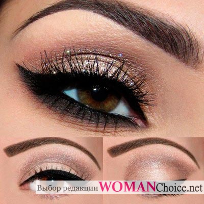 При этом тени могут быть матовыми или перламутровыми, в зависимости от повода. Мейкап можно дополнять стрелками чёрного, коричневого, серебристого и золотистого оттенка. Для дневного макияжа лучше избегать использования яркой подводки.