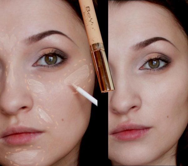 Подсвечивающий консилер – помощник в борьбе с синяками под глазами. Макияж предусматривает использование оттенка на тон светлее кожи и минимум на 2 тона светлее тонального крема. Желтый пигмент маскирует синие пятна и скрывает следы стресса, усталости. Необходимо нанести пару капель консилера на участки под глазами и растушевать, можно наложить сверху бликующую пудру.