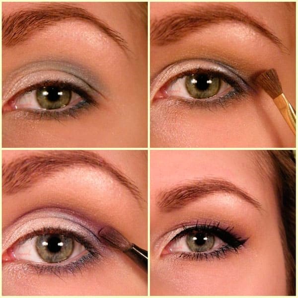 - Запомните о том, что четкие и прямые – правильные линии для такого макияжа выступают своеобразным запретом. Самым лучшим вариантом реализации поставленных целей станет использование нежных тонов, что позволит достичь наилучших параметров стиля, натуральности, к тому же, такой макияж исключит видимость нависшего века.