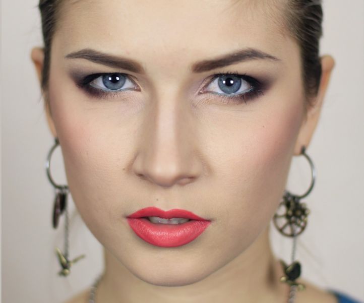 Брови в таком макияже имеют огромное значение, поэтому их нужно правильно скорректировать. Слишком густые брови будут еще более утяжелять взгляд, тонкие тоже — это не слишком хорошо