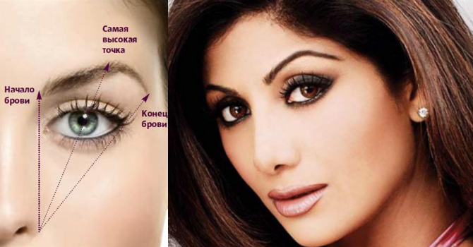 Чтобы выбрать идеальный изгиб брови, подсмотрим за восточными красотками, припухшие веки для которых — привычное дело. Примечательно, что слегка угловатый изгиб будет смотреться отлично. Часто делают излом брови над внешним уголком глаза.