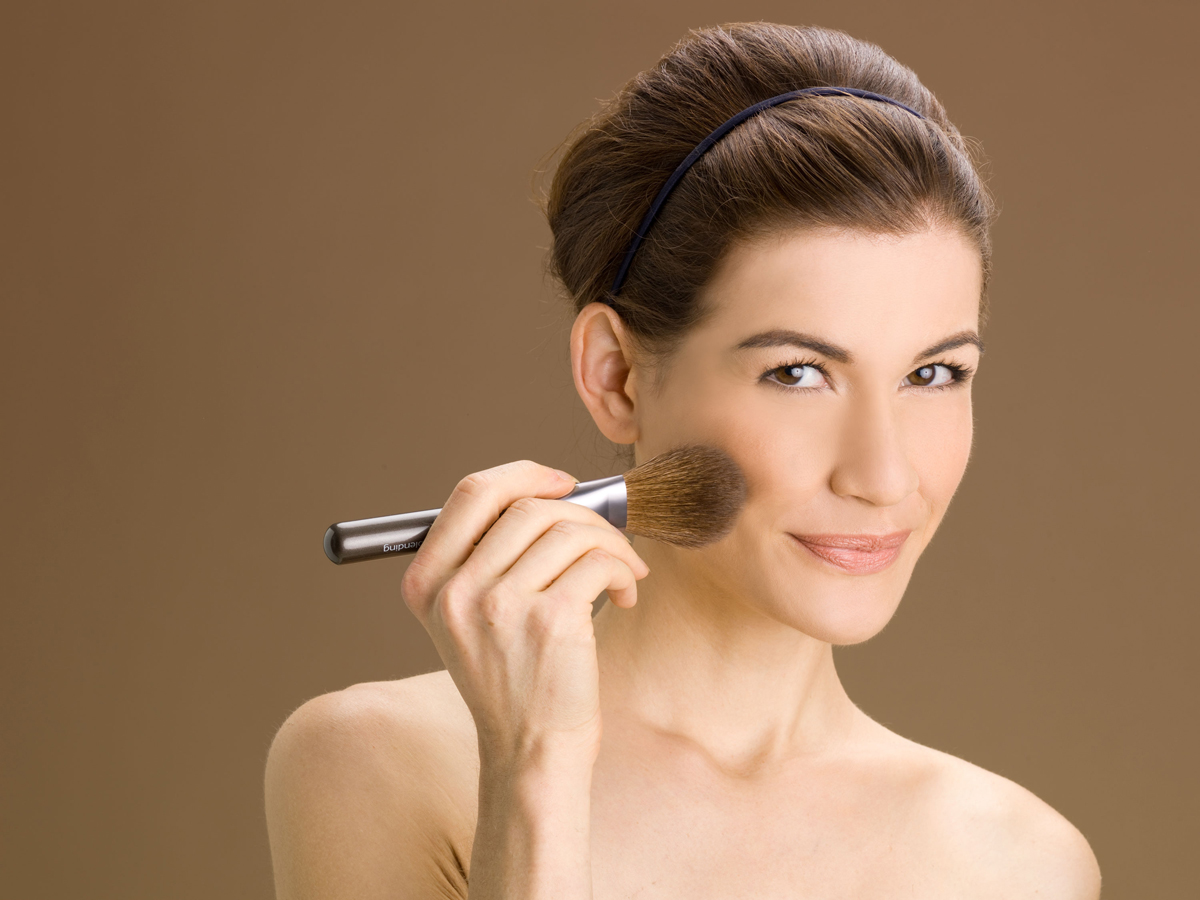 - Пудру и румяна с кремовой основой. Подобный состав равномерно распределяется по коже лица, скрывая морщины и другие недостатки.