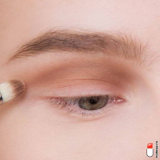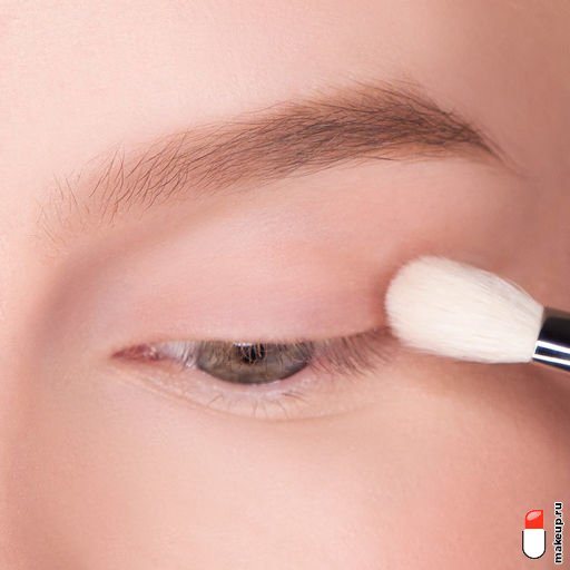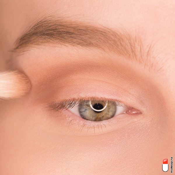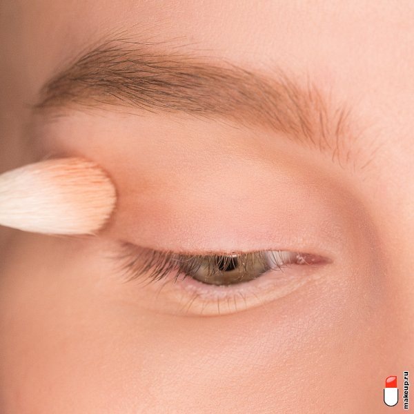 1 Нанесите на веки праймер для век или тонкого слоя тонального крема. Затем растушуйте пушистой кистью из натуральных ворса бежевых теней по всей поверхности века.